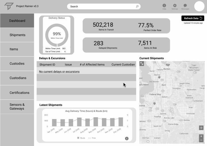 What: Our team of 3 had 3 weeks to design the first version of Transparent Path’s dashboard for tracking food shipments.